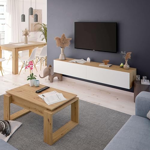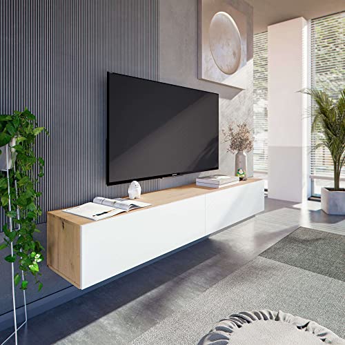 Habitdesign Muebles TV de Comedor Kaway Color Roble Nodi y Blanco Artik 35x180x28 cm