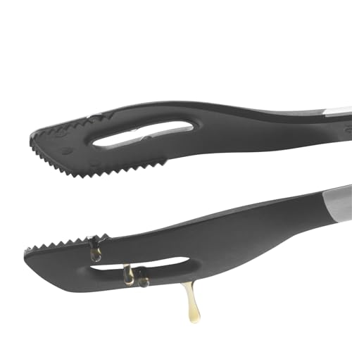 - Una pinza resistente al calor para servir directamente en la mesa, pero tambien para barbacoas electricas y sartenes con revestimiento antiadherente. El exceso de grasa gotea rapida y facilmente gracias a su amplia abertura